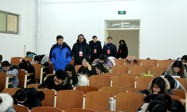 1月2日是学校2018-2019学年第一学期期末考试的第一天。校长盛国军、副校长刘正林等学校领导巡视考场,检查指导期末考试工作。教务处、教学质量监控与评估处、各教学院部等部门和单位的负责同志参加巡考。